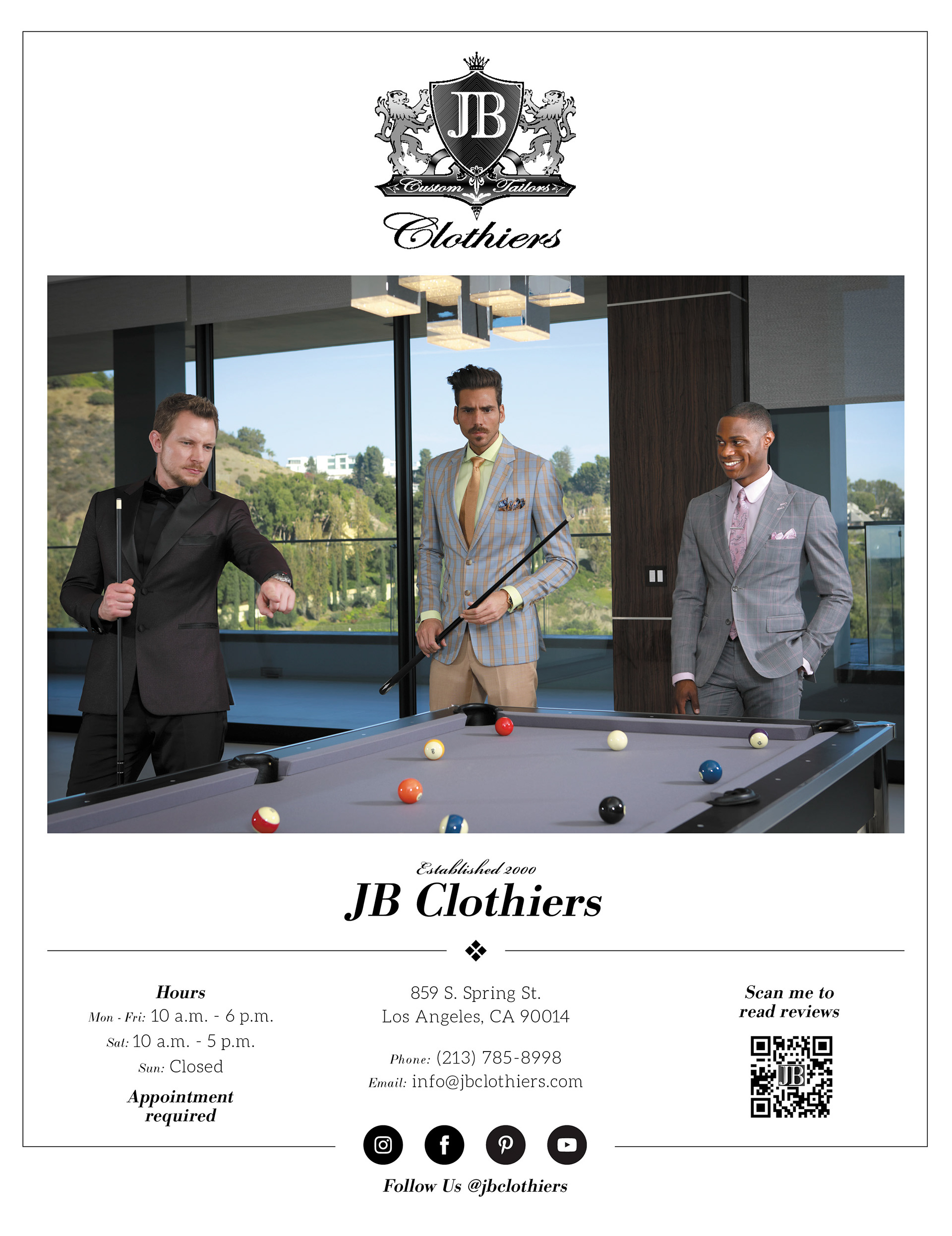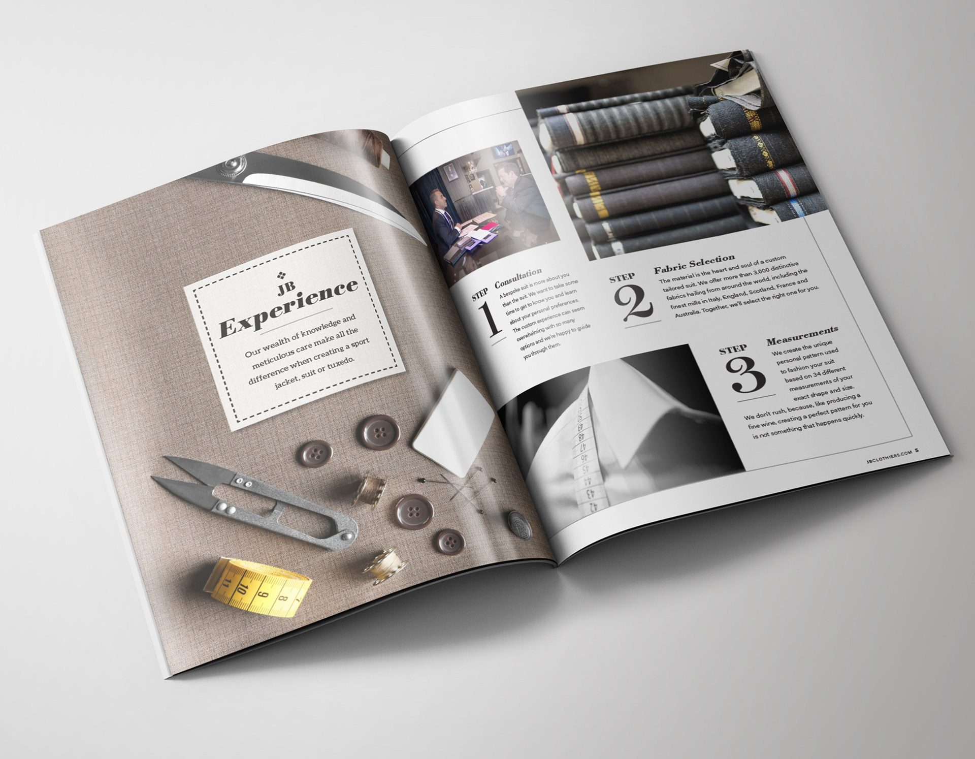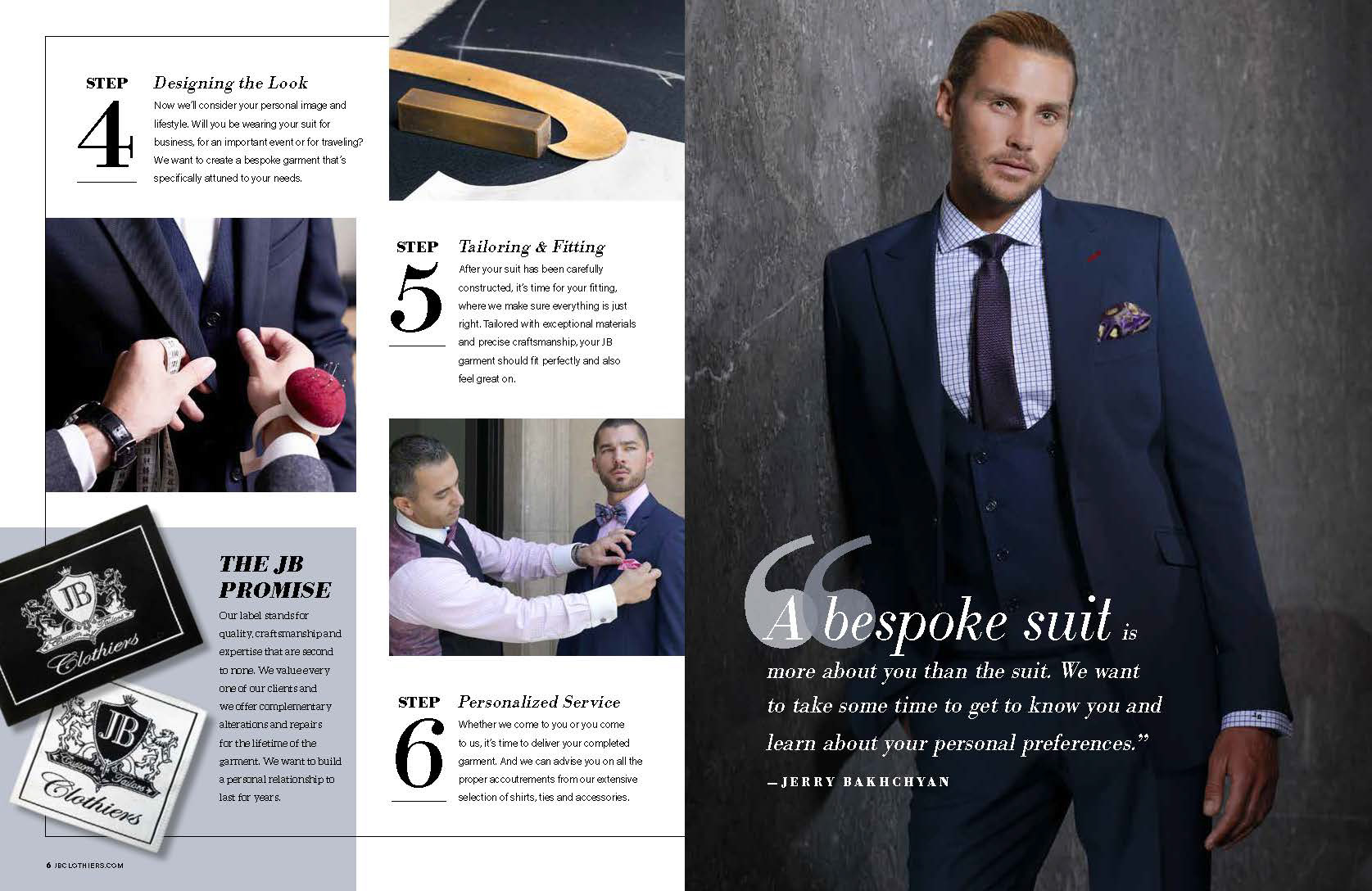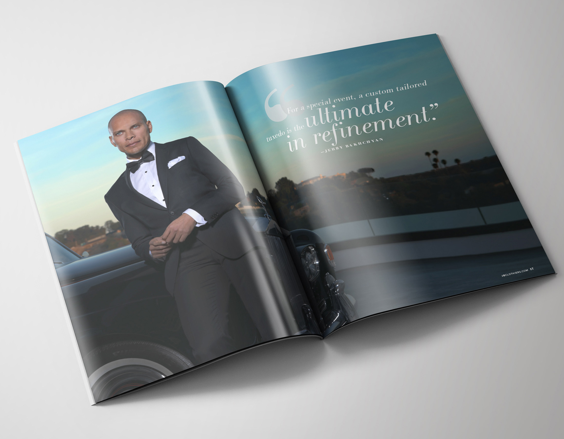JB Clothier, a bespoke tailor in Downtown Los Angeles wanted to create their look/brand book with magazine style. We brought a writer/editor, Vincent Boucher who worked at Men's Vogue, GQ, and Details.